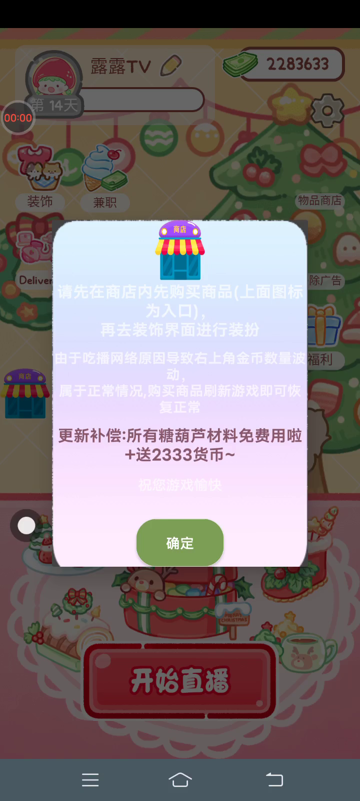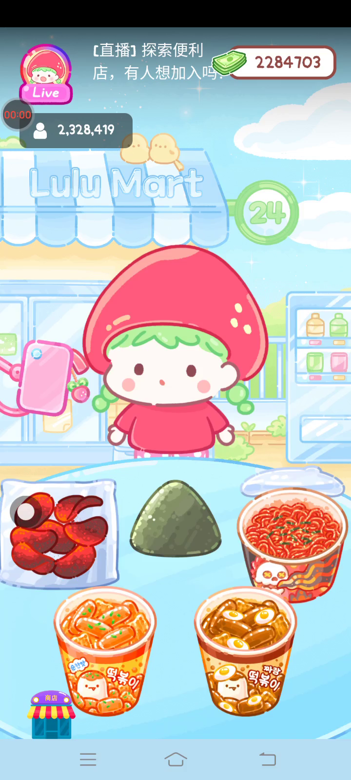更新新的装饰和圣诞糖葫芦!! 「你进行草莓糖葫芦吃播的话,我就赞助100元。」 「脆口的声音太迷人了(°θ°)」 由于客人都被最近新开的许多糖葫芦店家抢走,曾经号称糖葫芦达人的父母因此卧病在床。 继承父母店面的主角露露开始糖葫芦吃播来宣传店面。 直到成为真正的糖葫芦达人那一天! 「今天我也要开始糖葫芦直播罗!( •o• )」 [串材料] 只有新鲜的水果的话,很难以一名吃播实况主存活下来。还要有松饼、地球软糖、青阳辣椒!利用奇特的材料制作糖葫芦吧。 [裹糖衣] 将材料串满竹签的话,就放进锅子搅动吧。唯有利用达人的秘法,才能裹出又薄又脆的糖衣。 [即时吃播] 咔哒咔哒!今天的吃播也大成功。热烈的聊天内容看起来反应也不错。看来得利用完成观众任务得到的赞助金来买新材料了! 来,准备好了吧?现在就马上挑战成为糖葫芦达人吧!