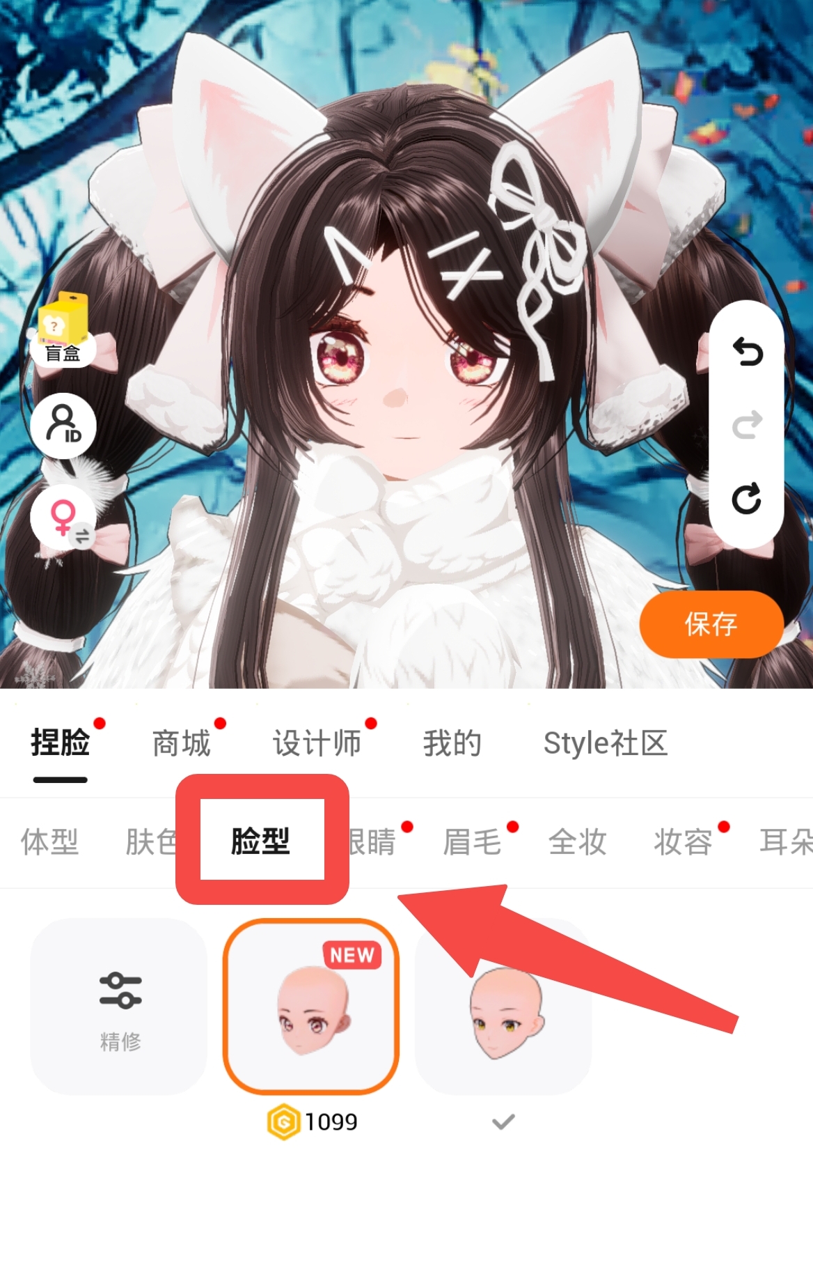 点击商城,在【捏脸】页,选择【脸型】即可查看!
