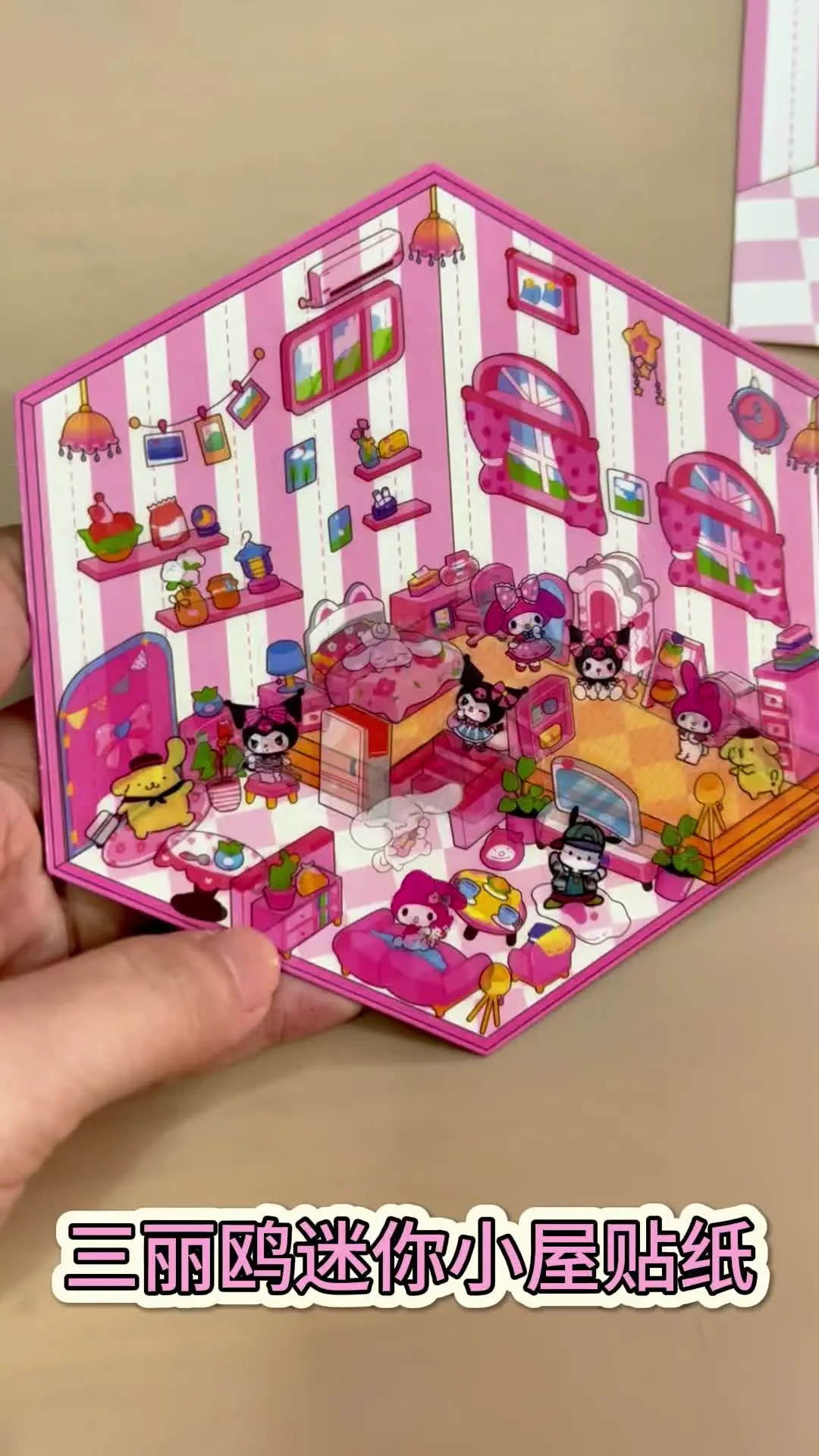 宝子们,新款三丽鸥迷你场景小屋贴纸来了,1本2张贴纸,一张场景,图案好看#三丽鸥 #贴纸 #微缩场景 #手工diy