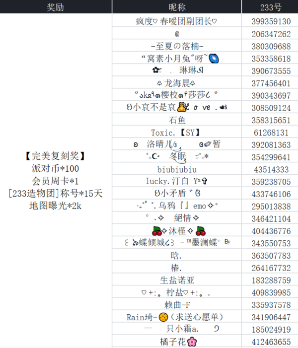 奖品:赠送心愿单物品*3个+233乐园会员月卡*1+[233造物团]称号*30天+地图曝光*10w