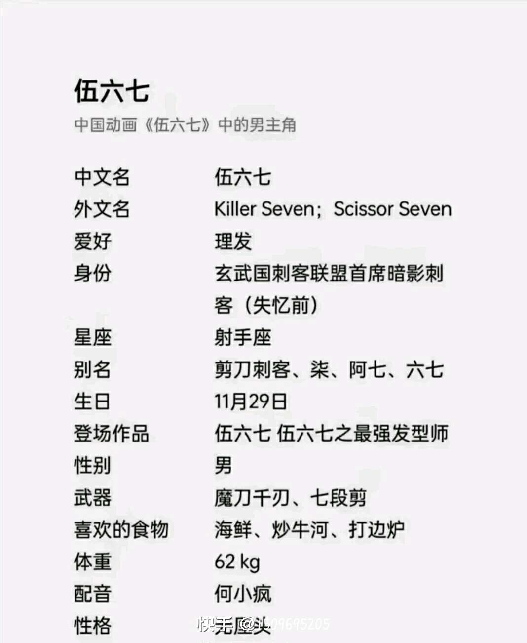 阿七生日快乐,我的挚爱 岁数:21 爱好:理发 星座:射手座 配音:何小疯 生日:11.29
