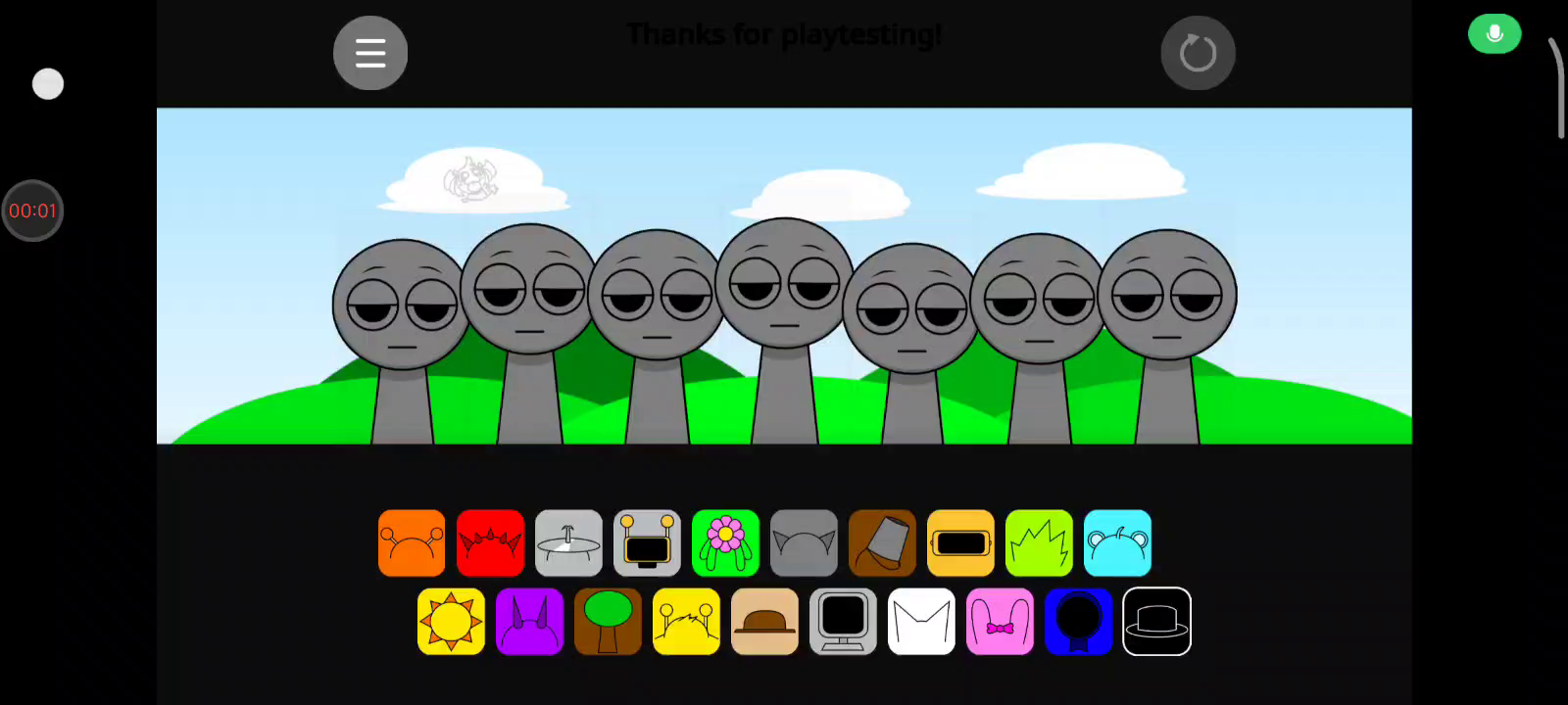 注意:1.节奏盒子(Sprunki-罪人版)为国外玩家自制,内含恐怖元素。 2.如何触发角色互动:在第一阶段,将【棕色帽子】角色放在【黄色天线】角色左边即可触发恋爱互动(如视频所示)。 3.如何进入第二阶段:放置【黑色帽子】角色。 ------ 节奏盒子是一款独具特色的音乐类游戏,让你能够自由挑战音乐关卡,还可以自行创造关卡供其他玩家进行尝试挑战。将代表不同声音的各种符号拖动到小人身上,便会混合出节奏感超强的各种音乐,涂鸦风格的画面和各种节奏感超强的音乐一定会让你喜欢。
