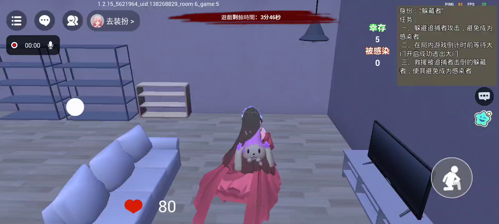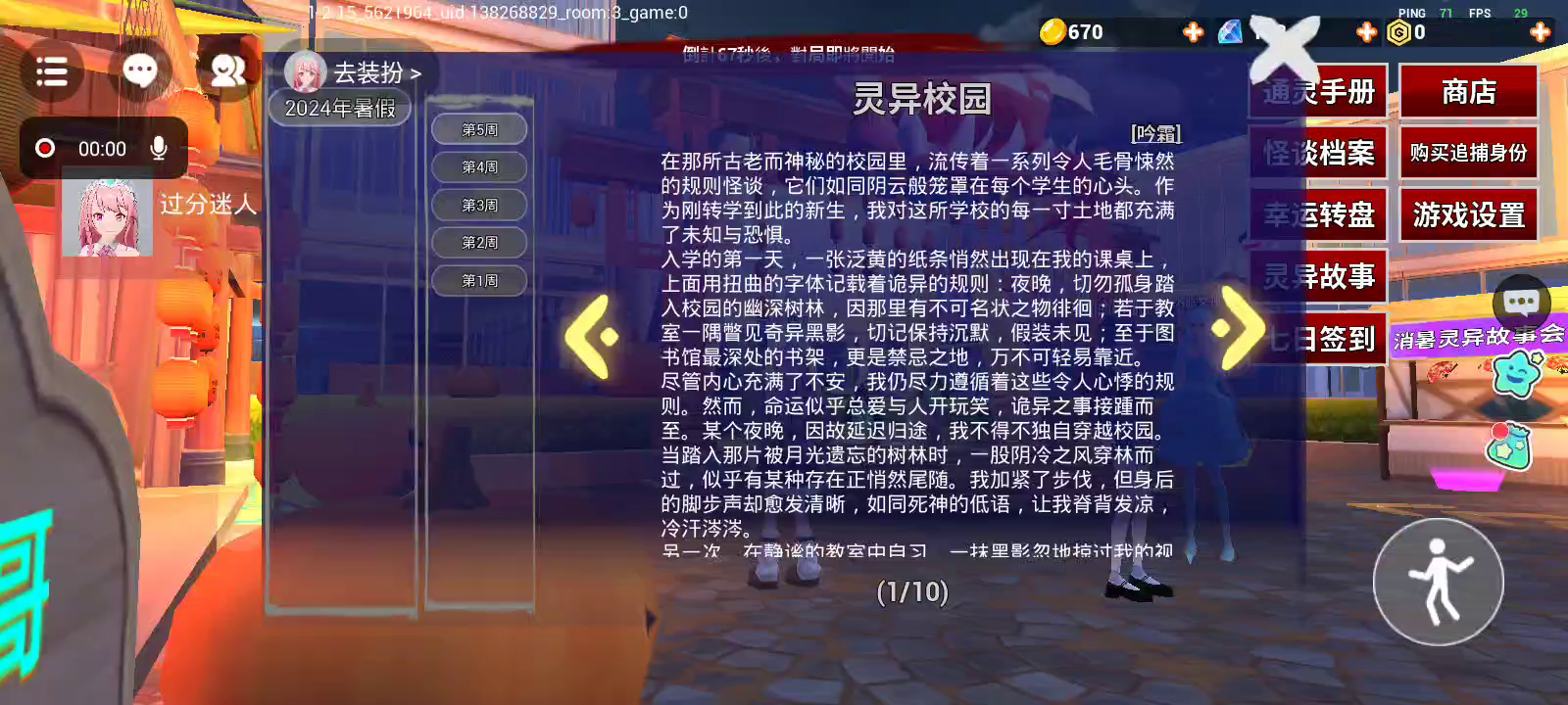 在游戏中,你将扮演花子,一个在校园中游荡的幽灵,任务是抓到其他玩家扮演的学生,同时解开自己的过去之谜; 或者扮演学生,任务是躲避校园的花子不要被抓到!!!快来和好友们一起体验吧!!!