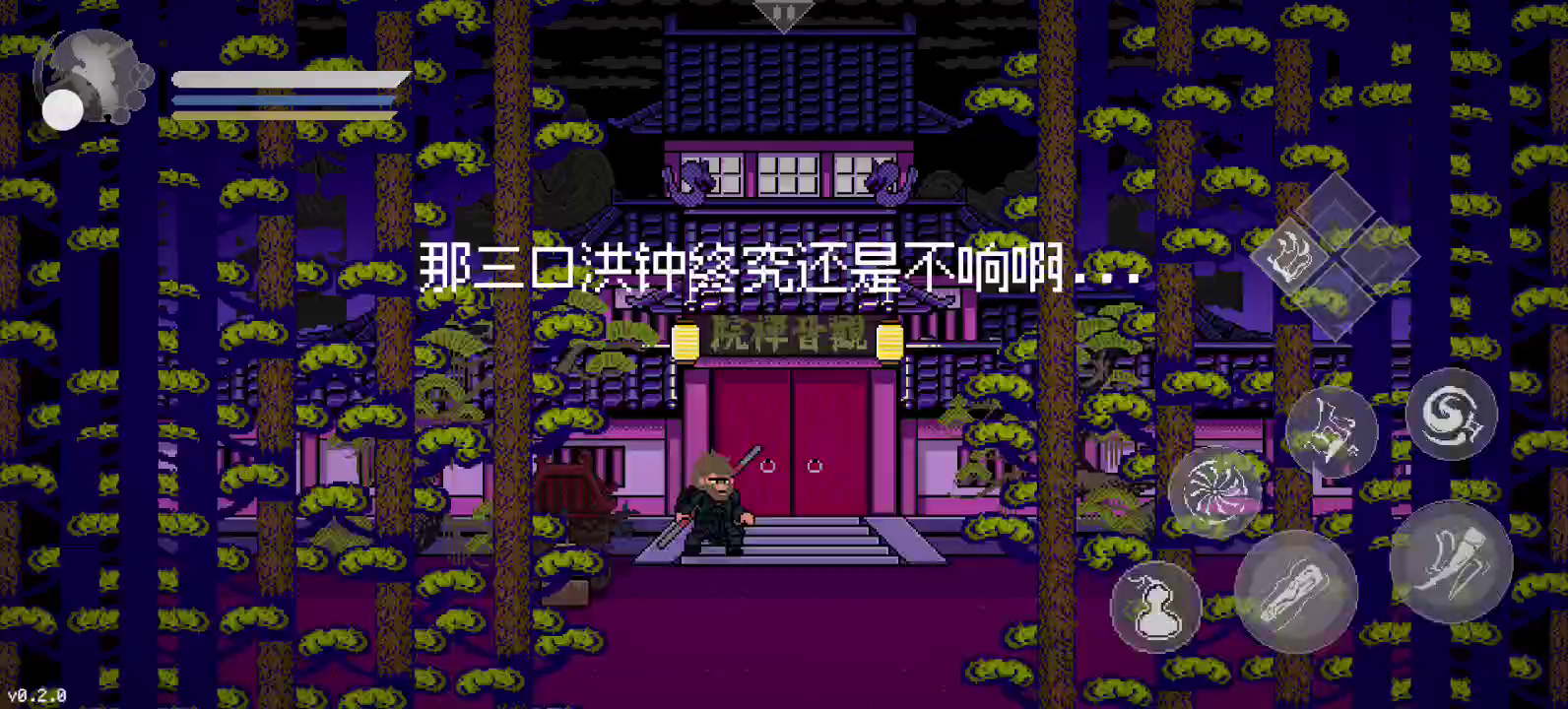 《黑神话像素版》已更新第二章节,第二章节0.2版本与0.1版本存档不互通,更新至0.2新版本后,进入游戏点击【新的轮回】即可游玩第二章节全新内容。 第二章(0.2版本)更新内容 1、新增第二章节:风起黄昏; 2、新增boss:广智、沙国王、沙二郎、浪里个波、波里个浪、虎先锋等; 3、新增隐身、变身、分身等技能法术; 4、新增神力系统和蓄力条; 5、新增精魄系统; ----------- 温馨提示: 本游戏是由B站UP主:火山哥哥开发制作的同人游戏,233乐园对该游戏进行收录供大家游玩体验。 下载使用产生的版权问题请自行负责,233乐园不承担任何法律责任,如果您喜欢该游戏请支持官方正版。233乐园不拥有任何权利,其版权归该游戏的合法拥有者。如果该游戏侵犯了您的版权,请将相关版权证明或授权证明发送到邮箱,我们将在24小时内删除该游戏。 《黑神话悟空》像素版来袭啦!火山哥哥化身像素大师,将经典场景还原得淋漓尽致,十个不同地图场景让你眼花缭乱。孙悟空的移动、跳跃、战斗系统全部上线,连蓄力劈棍、棍花闪避都超级流畅,简直是像素版战斗艺术!小狼妖、大头、金池长老等BOSS悉数登场,每个都有独特招式,让你体验不一样的战斗乐趣!更有喝酒功能、定身术、存档系统等丰富玩法,让游戏不再单调。