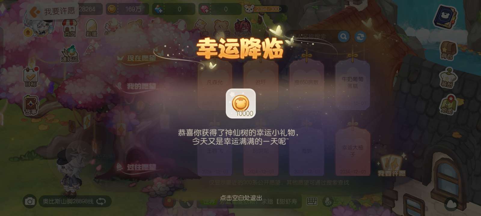 许愿树的小彩蛋我以为是蒙我的,忘记在这个界面哪里看到的了,结果是真有,是只有金币吗?还是还有其他的,以后我都要打开看看了,说不定哪天就开出钻了