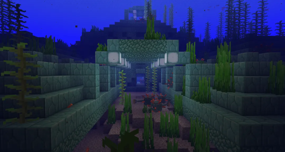 海底神殿生成在海洋生物群落之中