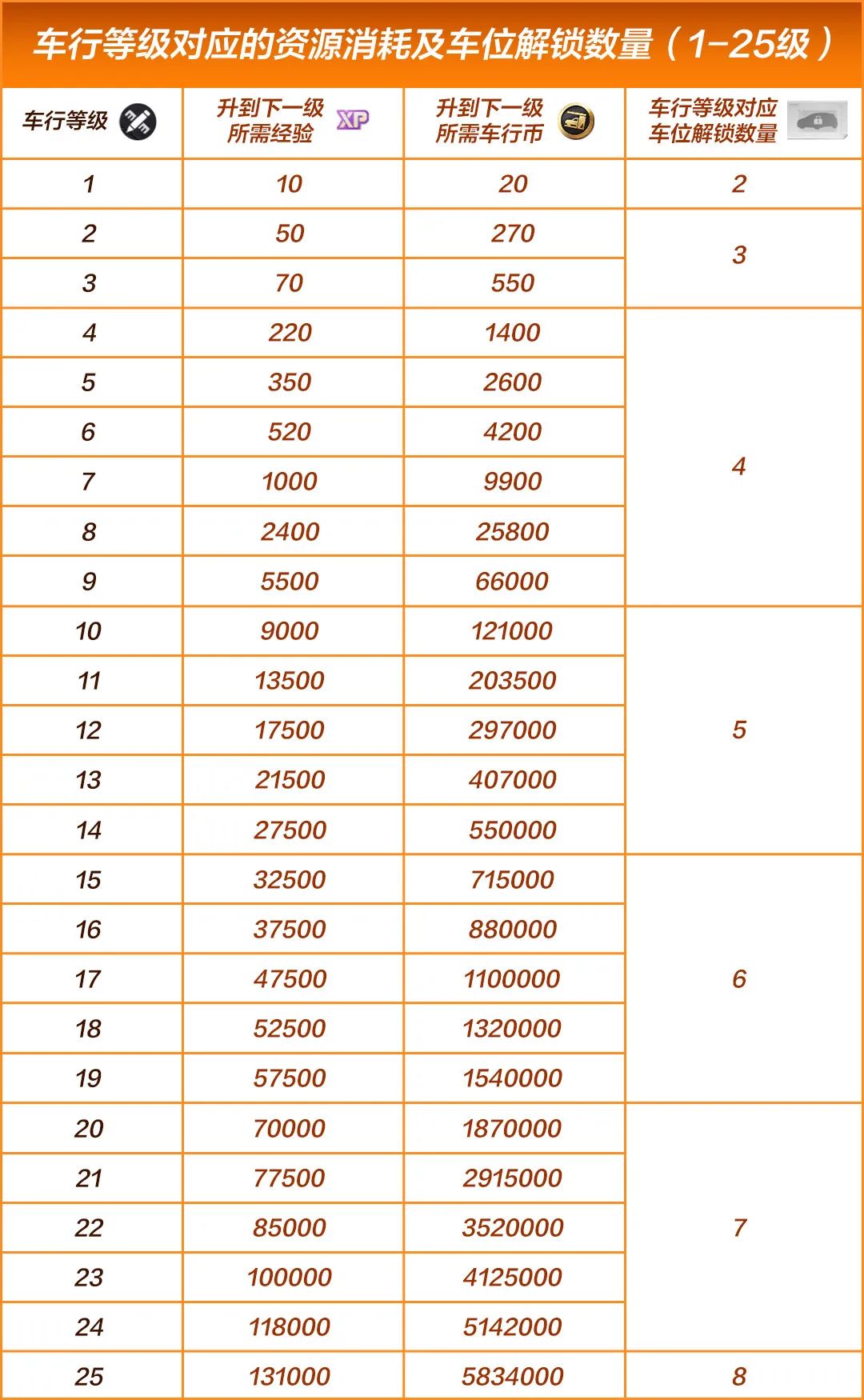 薇拉贴心地给大家整理出了升级相关图表方便查看!记得保存哦~