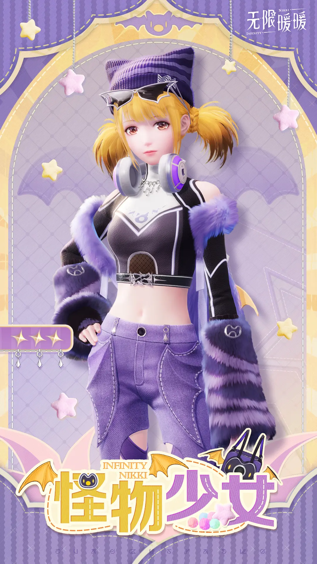搭配师可在【怪物少女】、【暖绒行动】、【晴日悠行】、【实验奇思】、【甜润蜜糖】中任选其中1套,享受60无垠星石折扣价购买。