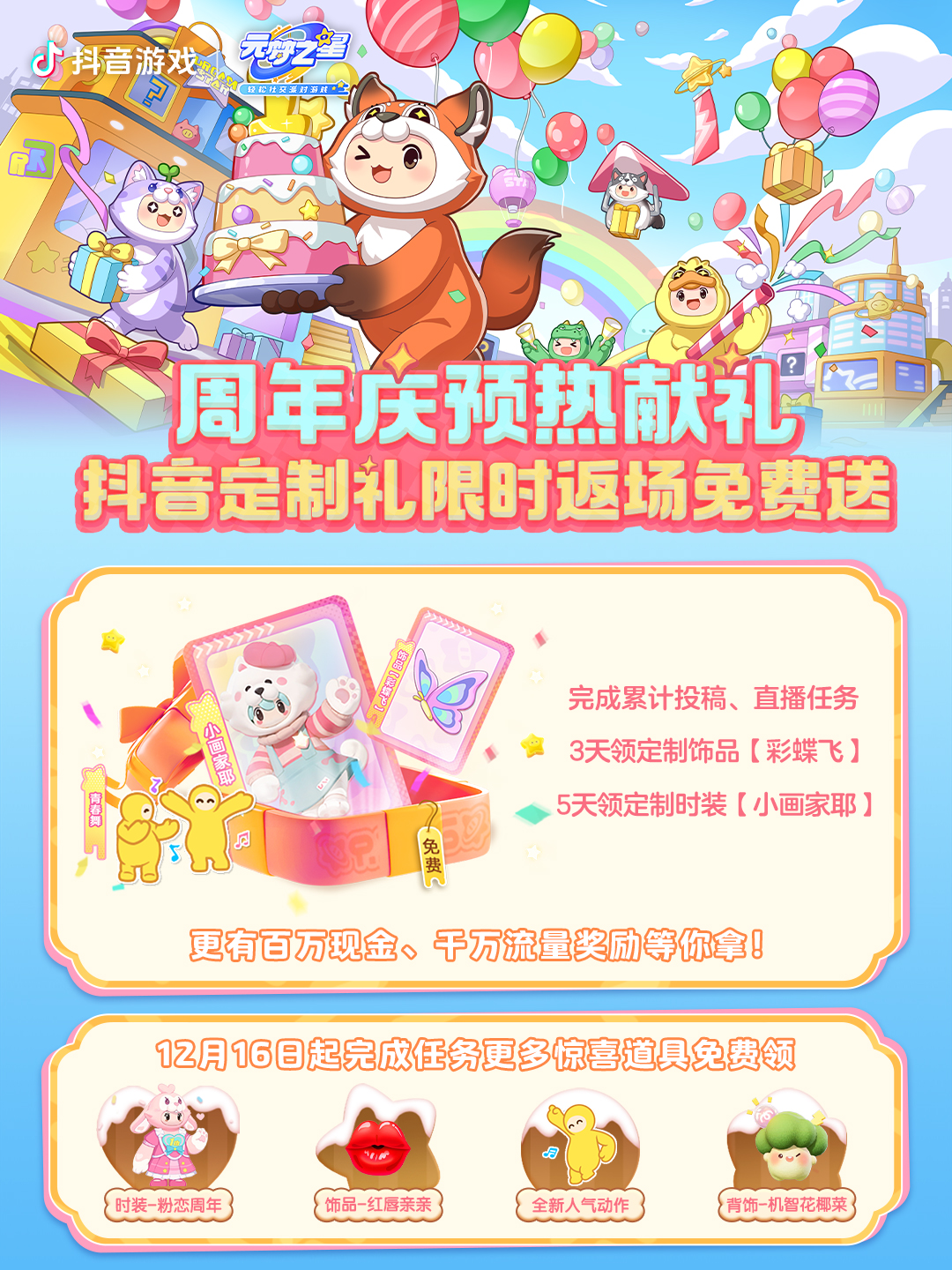 2、发布《元梦之星》游戏相关作品,满足条件即可参与瓜分万元现金奖池!开播并达到条件也可获得丰富奖励!