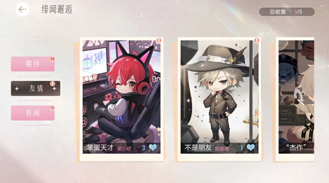 友谊卡为人脉好友卡牌,包含三段“绯闻秘事”剧情以及对应的阅读奖励。