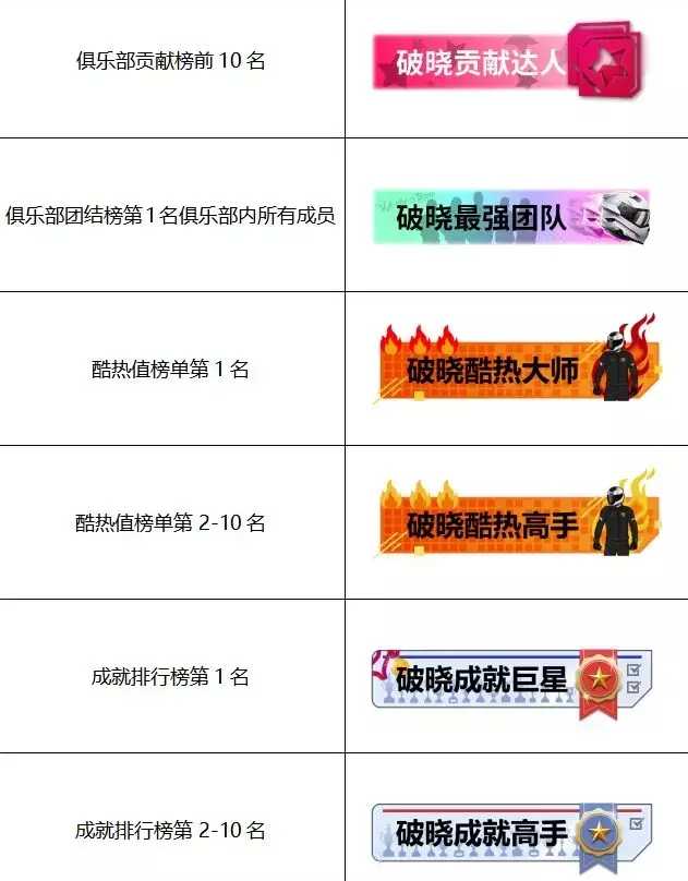 现对广大车友公布部分称号奖励及获取条件: