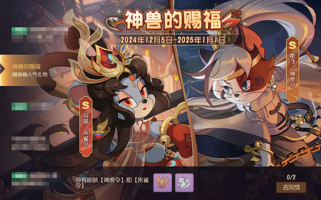 12月5日-12月15日,S级皮肤斯飞·神虎令&玛丽·朱雀令将上架商城,并享有限时折扣,喜欢这两款皮肤的小伙伴,可要抓住这难得的返场机会~活动期间,小伙伴们收集神虎令&朱雀令,还能赢取专属人气礼物哦!
