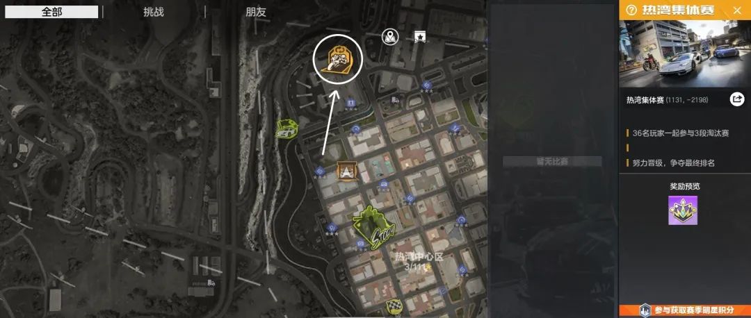 赛场入口就在大世界地图那醒目的标记点处。或是在进入大世界后,点击左上角即可一键加入。
