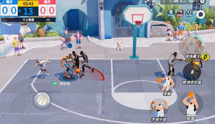 持球进攻时,点击“欧洲步扣篮”后,扬尼斯会向篮下突进,随后跳起双手暴扣。