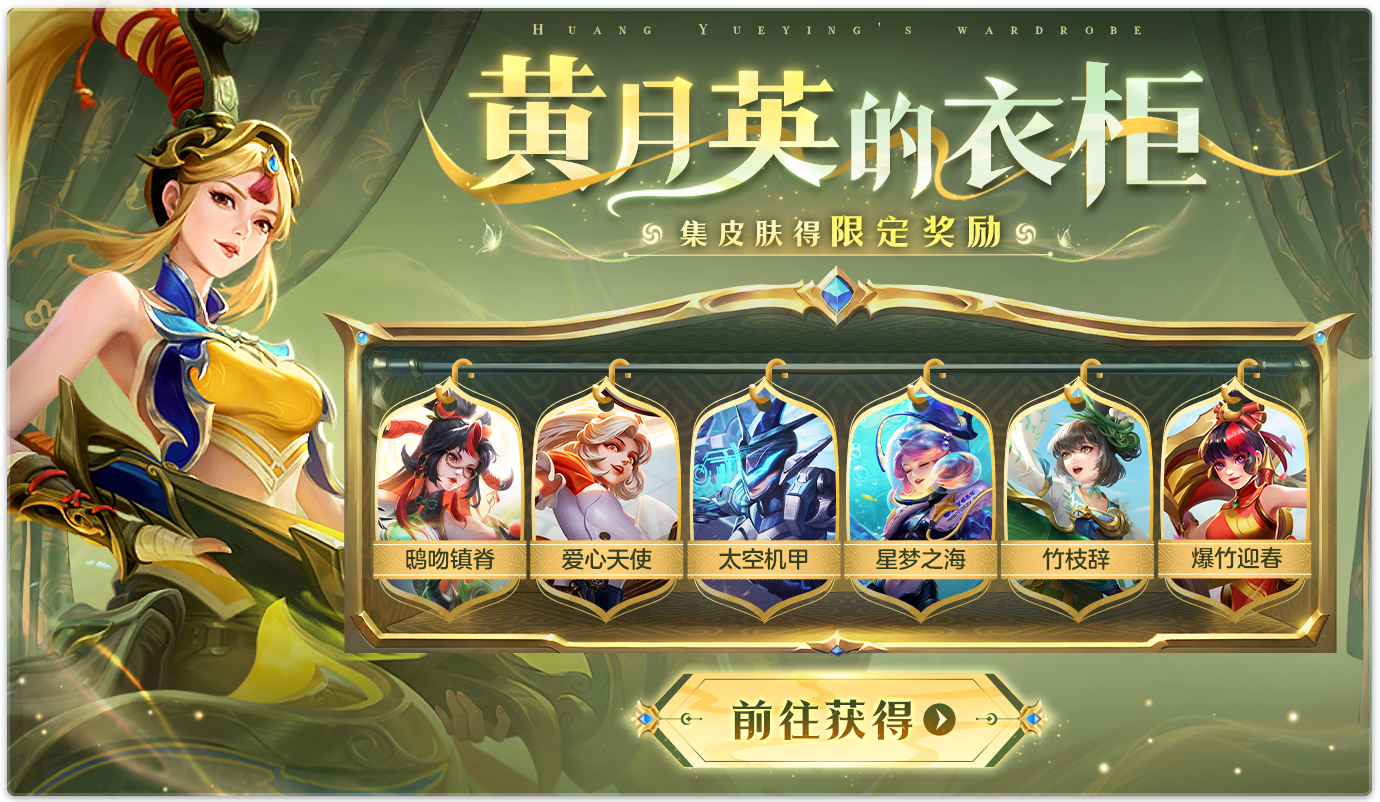 收集黄月英系列皮肤,根据皮肤收集进度可获得深海律动·黄月英头像、鹤引碧宵头像框、龙魂祈福卡