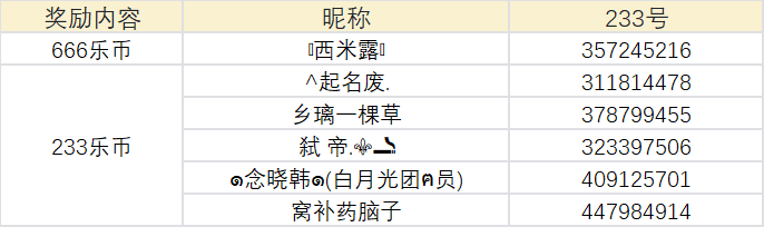 随机抽取5名玩家,每人发放233乐币!
