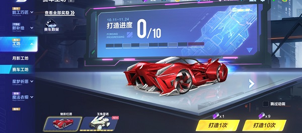A级赛车魅影红爵可通过寻宝-赛车工坊中获得,使用紫电能源进行打造,打造满10格,即可获得魅影红爵(永久)。