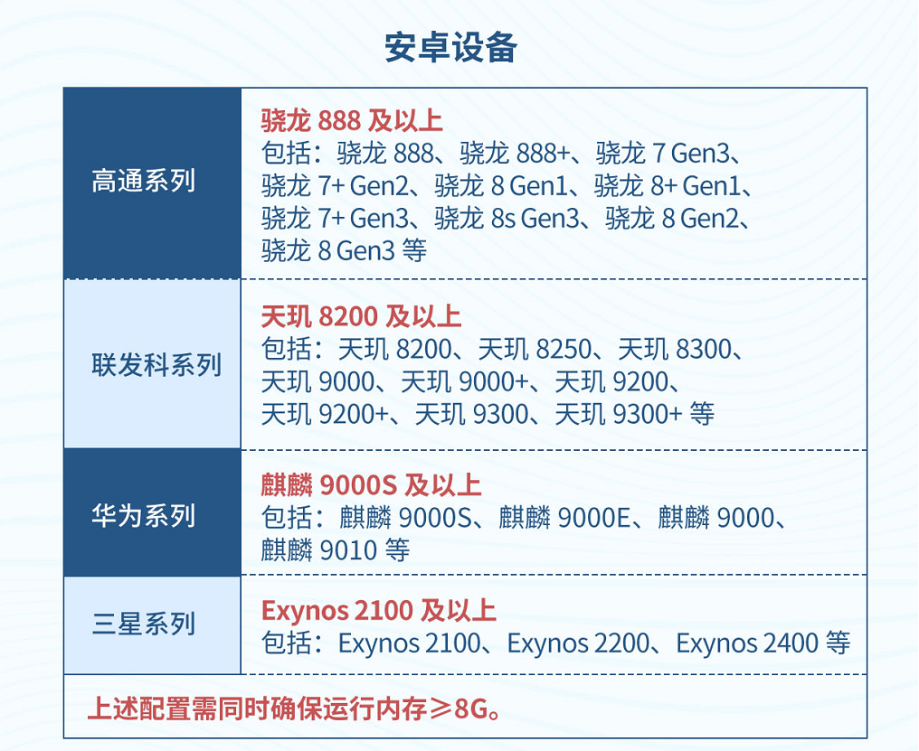 Q1: 当前版本是较早期版本,性能优化仍不充分,目前可支持性能≥如下配置的设备体验