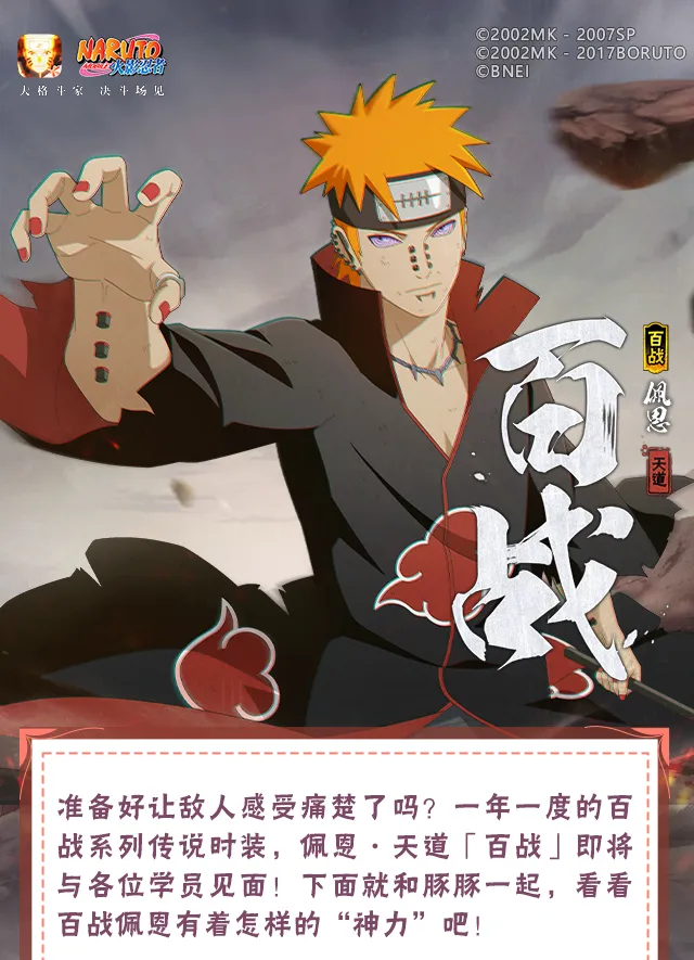 以兄弟之躯成为神,S忍佩恩「天道」及其全新传说时装「百战」完成百战试炼活动免费领取!