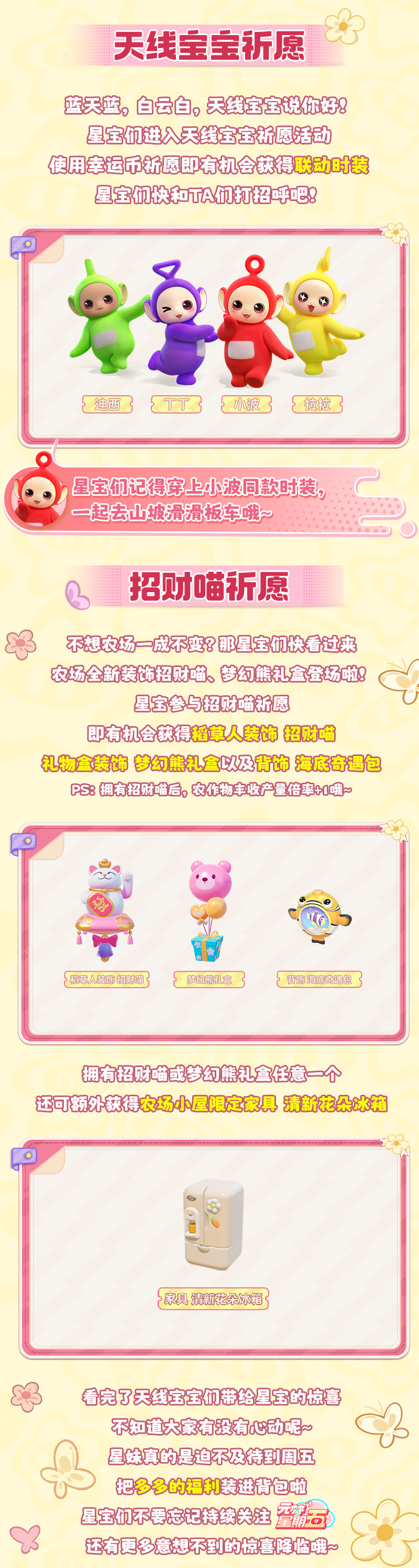 元梦星期五,福利大放送!快和天线宝宝一起解锁超多惊喜!