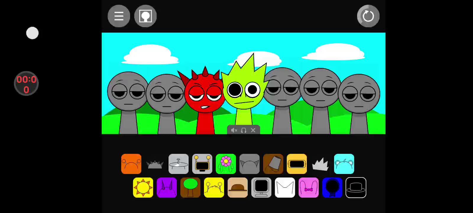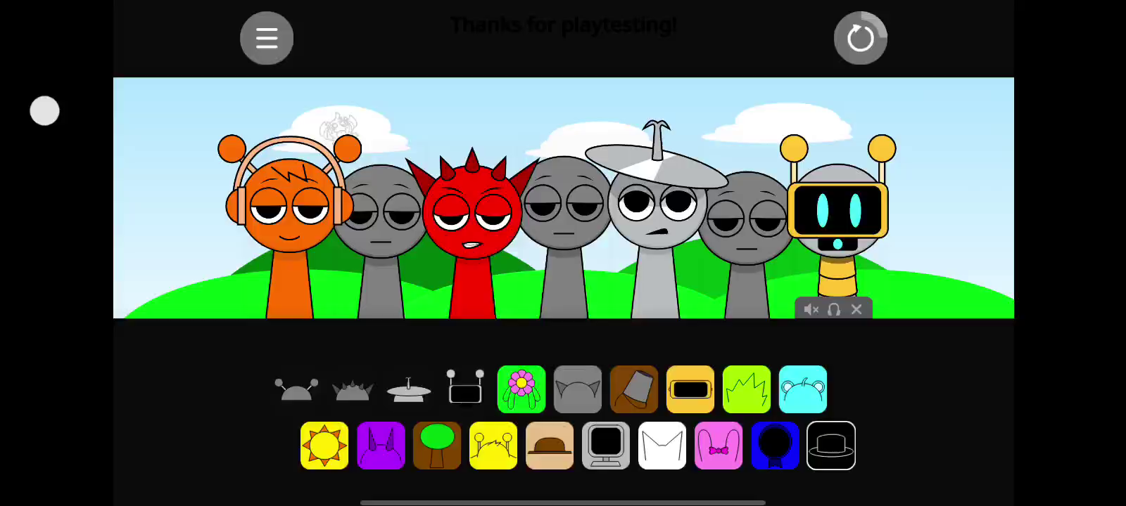 注意:1.节奏盒子(Sprunki-罪人版)为国外玩家自制,内含恐怖元素。 2.如何触发角色互动:在第一阶段,将【棕色帽子】角色放在【黄色天线】角色左边即可触发恋爱互动(如视频所示)。 3.如何进入第二阶段:放置【黑色帽子】角色。 ------ 节奏盒子是一款独具特色的音乐类游戏,让你能够自由挑战音乐关卡,还可以自行创造关卡供其他玩家进行尝试挑战。将代表不同声音的各种符号拖动到小人身上,便会混合出节奏感超强的各种音乐,涂鸦风格的画面和各种节奏感超强的音乐一定会让你喜欢。