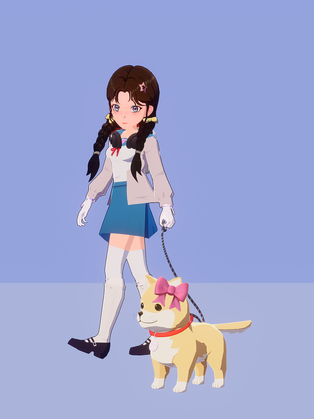 买了一个新头发,顺便出去溜溜狗