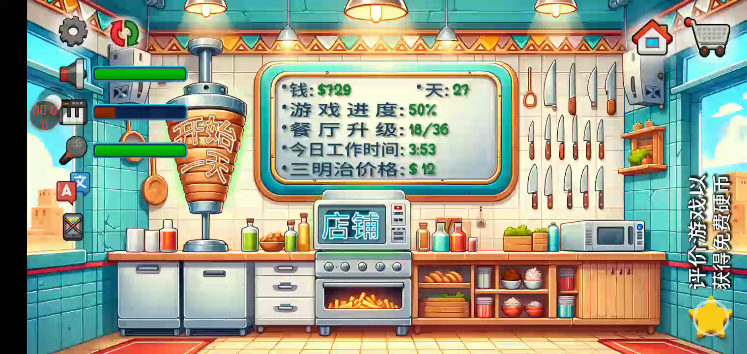 沙威玛传奇:真正的沙威玛体验! 你是否曾经想过经营自己的沙威玛餐厅是什么样的感觉?沉浸在沙威玛传奇中,这是一款最新且最激动人心的烹饪游戏,让你进入美食世界。精确地完成顾客的订单,让你的餐厅繁荣发展。 升级你餐厅的各个方面,从最新鲜的食材和最美味的沙威玛食谱到装饰和先进的厨房设备。与竞争餐厅一较高下,争取成为城里最好的沙威玛大厨! 游戏特色 提供你的语言版本:游戏完全提供中文版本,包括语音和文字。 有趣的卡通动画:享受将你的沙威玛餐厅变得生动的动画。 令人兴奋的游戏玩法和无尽的挑战:享受令人兴奋的游戏玩法和无尽的挑战。 逼真的模拟:体验设计得尽可能接近真实餐厅的游戏中的沙威玛大厨的生活。 真实的沙威玛准备:从烤架上切下沙威玛并真实地包裹三明治。 全面的升级:用顶级设备和装饰提升你的厨房,加快服务速度,让顾客满意。 可定制的沙威玛:让顾客根据他们的喜好定制他们的沙威玛三明治。多样化的顾客基础:为无数的顾客服务,每个人都有自己的沙威玛偏好。