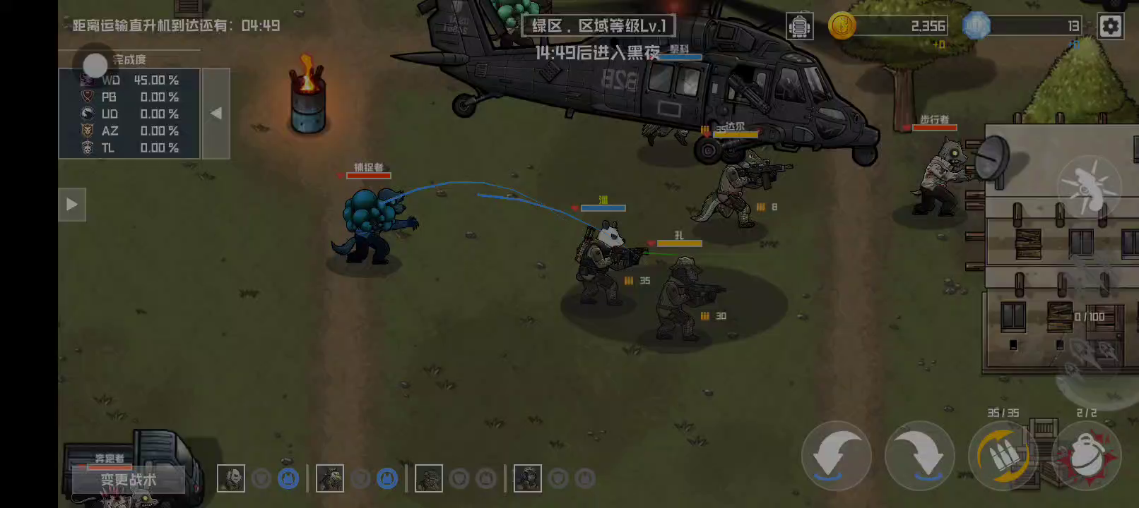这次主要给你们看,怎么打防爆boss?建议把队员集中在一起在火力压制,它一共有两层防护,一层雪