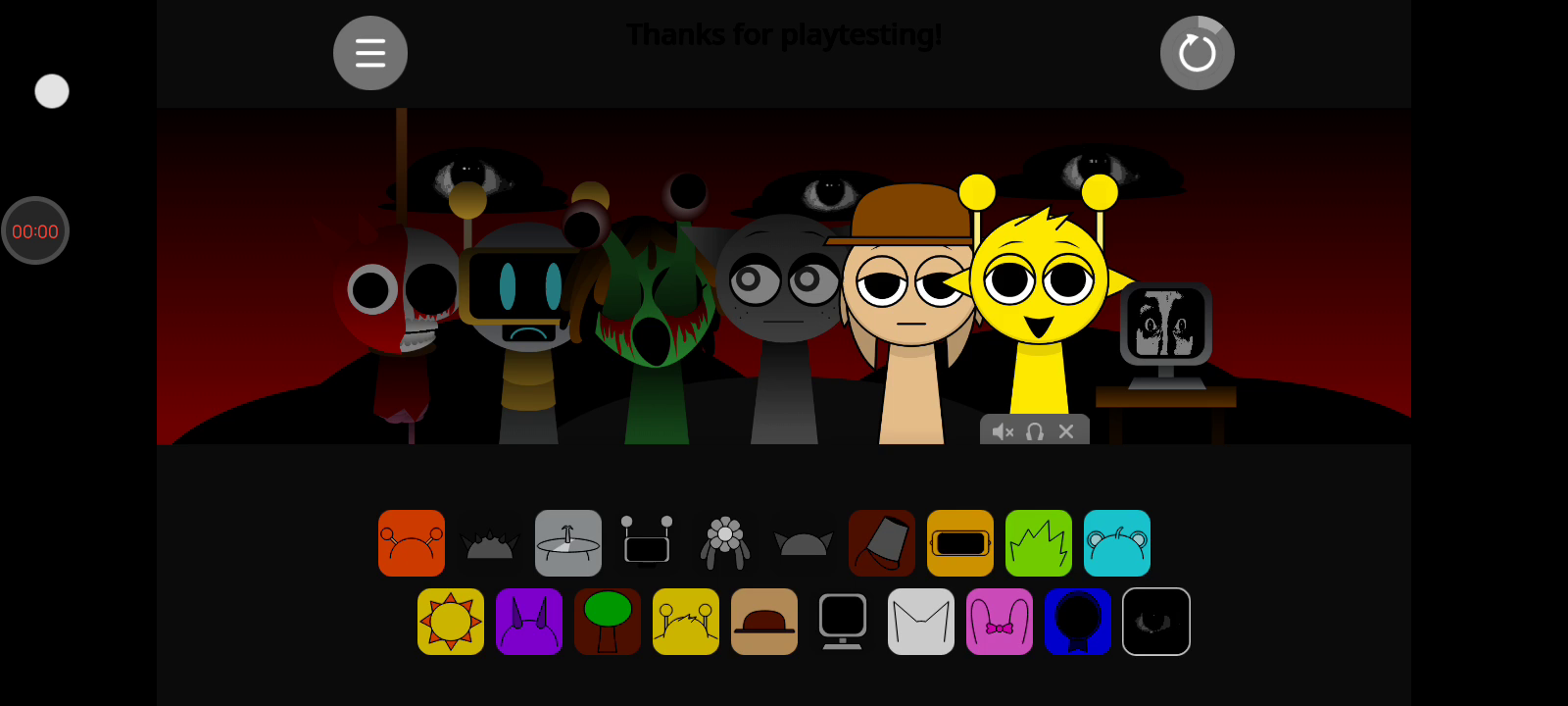 注意:1.节奏盒子(Sprunki-罪人版)为国外玩家自制,内含恐怖元素。 2.如何触发角色互动:在第一阶段,将【棕色帽子】角色放在【黄色天线】角色左边即可触发恋爱互动(如视频所示)。 3.如何进入第二阶段:放置【黑色帽子】角色。 ------ 节奏盒子是一款独具特色的音乐类游戏,让你能够自由挑战音乐关卡,还可以自行创造关卡供其他玩家进行尝试挑战。将代表不同声音的各种符号拖动到小人身上,便会混合出节奏感超强的各种音乐,涂鸦风格的画面和各种节奏感超强的音乐一定会让你喜欢。
