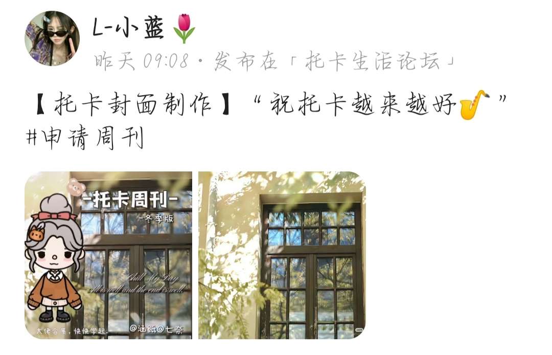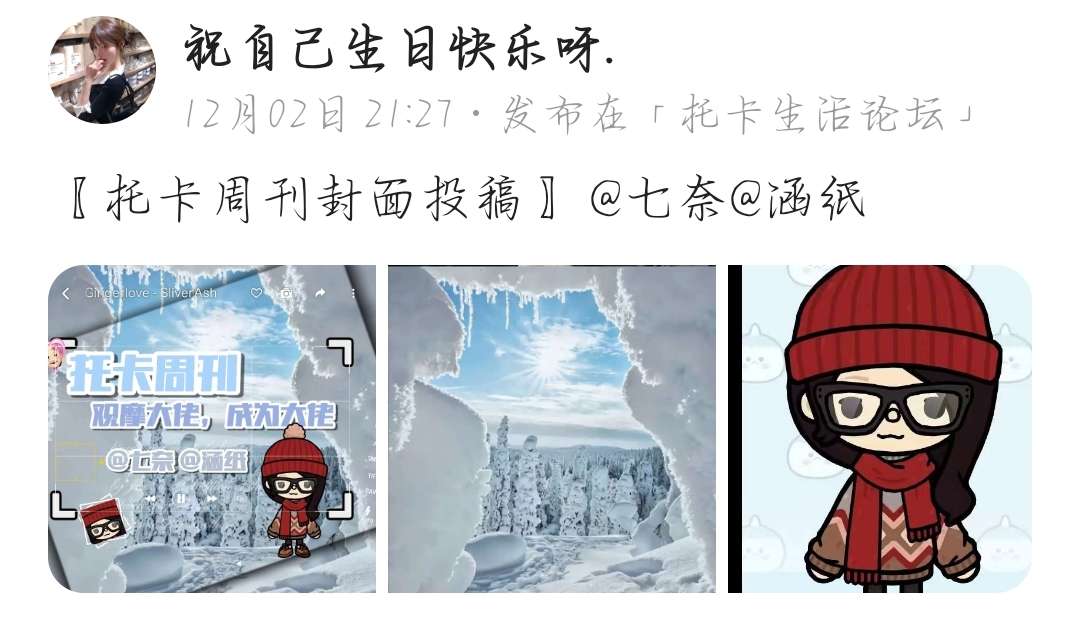 哈喽哈喽~托卡生活的玩家们❤️我是七奈,时隔一周,周刊又来更新啦‼️邀请你观看本期周刊and创作高质性作品,最后期待大家下次的参与哦。