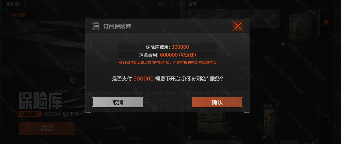 基于大家对于仓库内的配件、枪械、杂物物品的收纳需求,我们推出了保险库系统,先锋们可以使用柯恩币支付订阅费用和押金,开启保险库服务,开启后可在一定时间内将物资暂存进保险库。