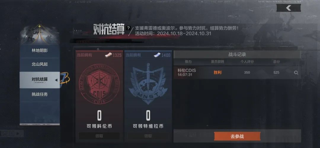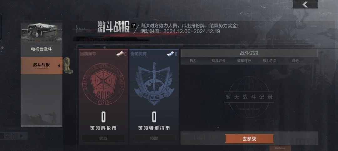 先锋可以在活动界面的激斗战报上查看自己的得分详情,领取赢得的势力币。