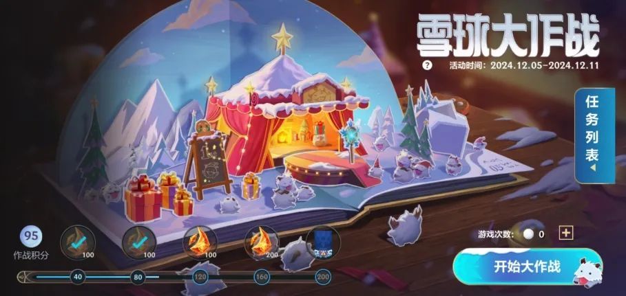 截止至12月11日,召唤师参与活动获取作战积分,积攒一定作战积分即可领取无畏队旗-冰雪队旗和龙魂水晶*500奖励!