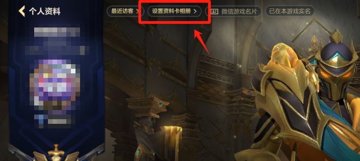 在大厅界面中,点击左上角【头像】进入个人资料界面,在界面左上角找到【设置资料卡相册】,点击进入即可进行操作。