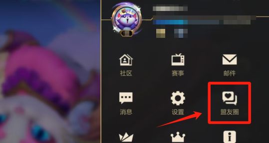 在大厅界面中,点击右上角消息盒子按钮,找到并进入【盟友圈】,点击界面右侧【头像-我】进入即可进行操作。
