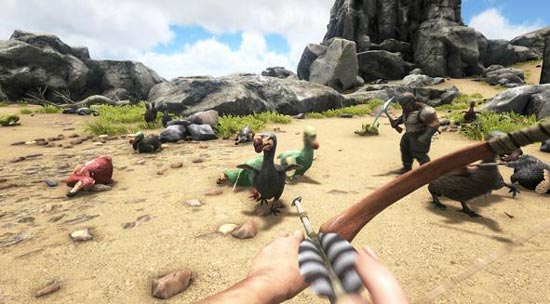 这之后我们可以继续制作下一个很有用的武器了,弓和箭,还有威力更大的麻醉箭。迂回战术麻醉箭连大型恐龙都可以撂倒,制作好弓箭之后,你就可以慢慢发展你的恐龙部队了,也代表你在这个世界立足了下来。