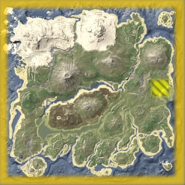 最后附上托沧龙分布图,图中黄色区域都是沧龙的出没地,目前已知较大刷新概率有3处:左下角月牙岛深海中、右上角死亡岛深海以及正北雪原方向深海中!沧龙数量不多,比较稀有。
