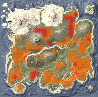 最后附上古神翼龙分布图,图中红色橙色大概率出现地,古神翼龙比较稀有,抓捕只能随缘了,祝大家好运。