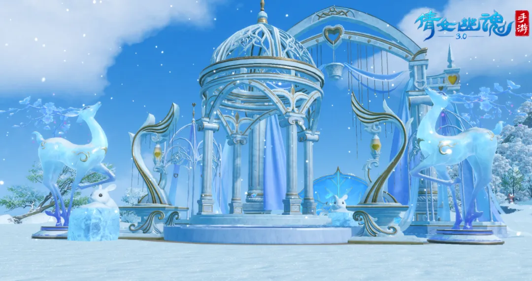 与此同时,三款全新琉璃系列家具也即将更新在家园当中。由冰雪打造的琉璃雪兔与灵鹿来为家园添上几分雪的浪漫,再配上一面琉璃·冰荷华屏,仿佛这里即将展开一场浪漫的冬日宴会!