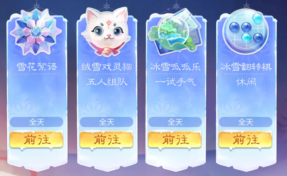 除了联动玩法的更新,更有大家期待已久的节日活动即将与大家见面!绒雪纷纷三界白,戏猫弈棋暖人间——冬日活动将于12月版本与你共赏冬景。
