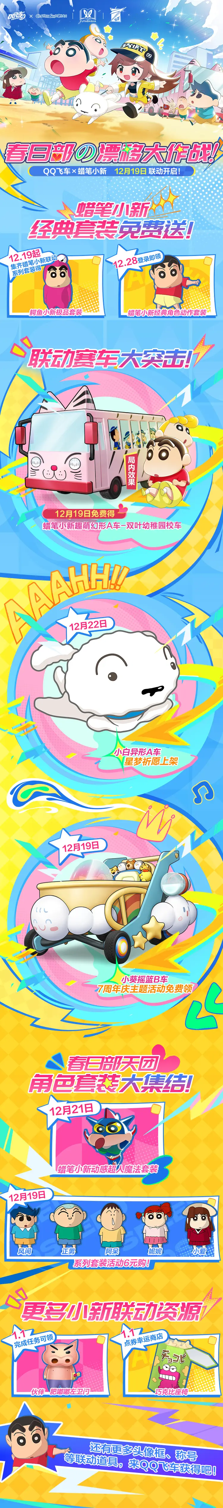 ⭐12月19日起,全新体型系列套装闪亮登场,多款经典角色套装6元直购,集齐领鳄鱼小新极品套装;12月28日登录即领蜡笔小新动作套装!