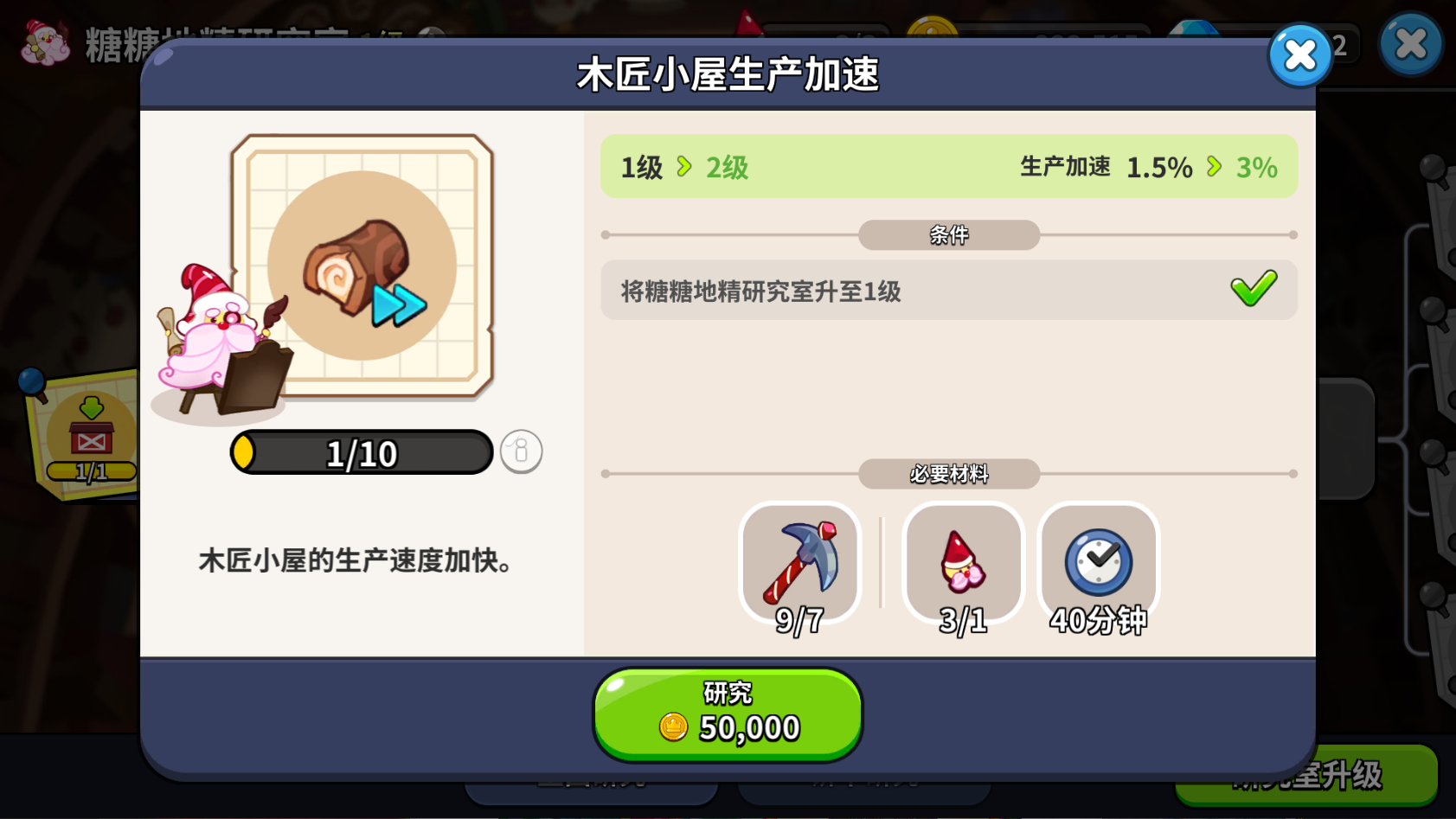 糖糖地精研究室可以解锁并且开始研究科技,只要材料够,科研不要停。
