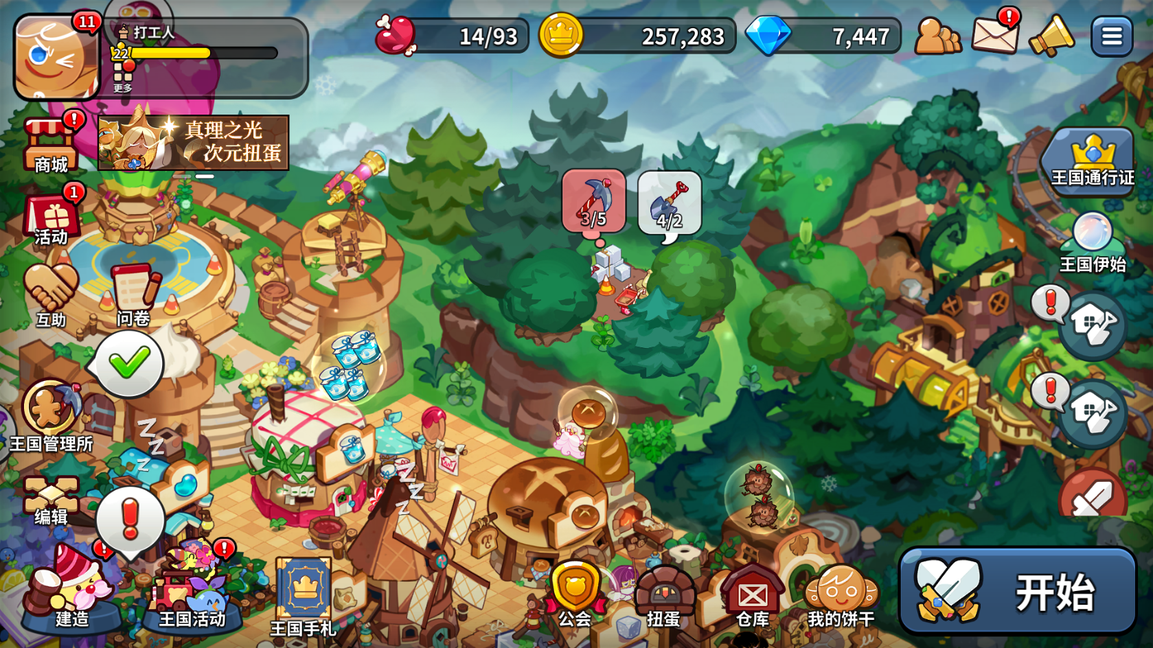 城堡等级4升5没问题。可以解锁两个新的建筑乐乐陶工坊和幸福花坊,还有第二座方糖采石场以及额外新增的两个饼干屋。
