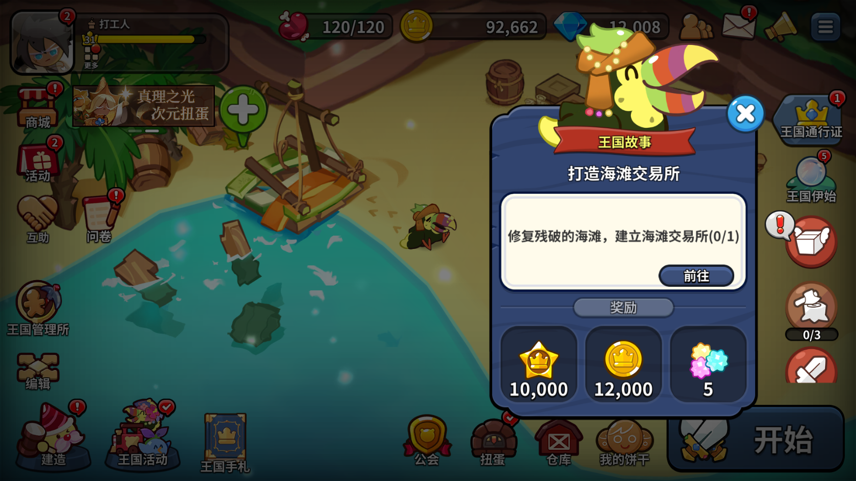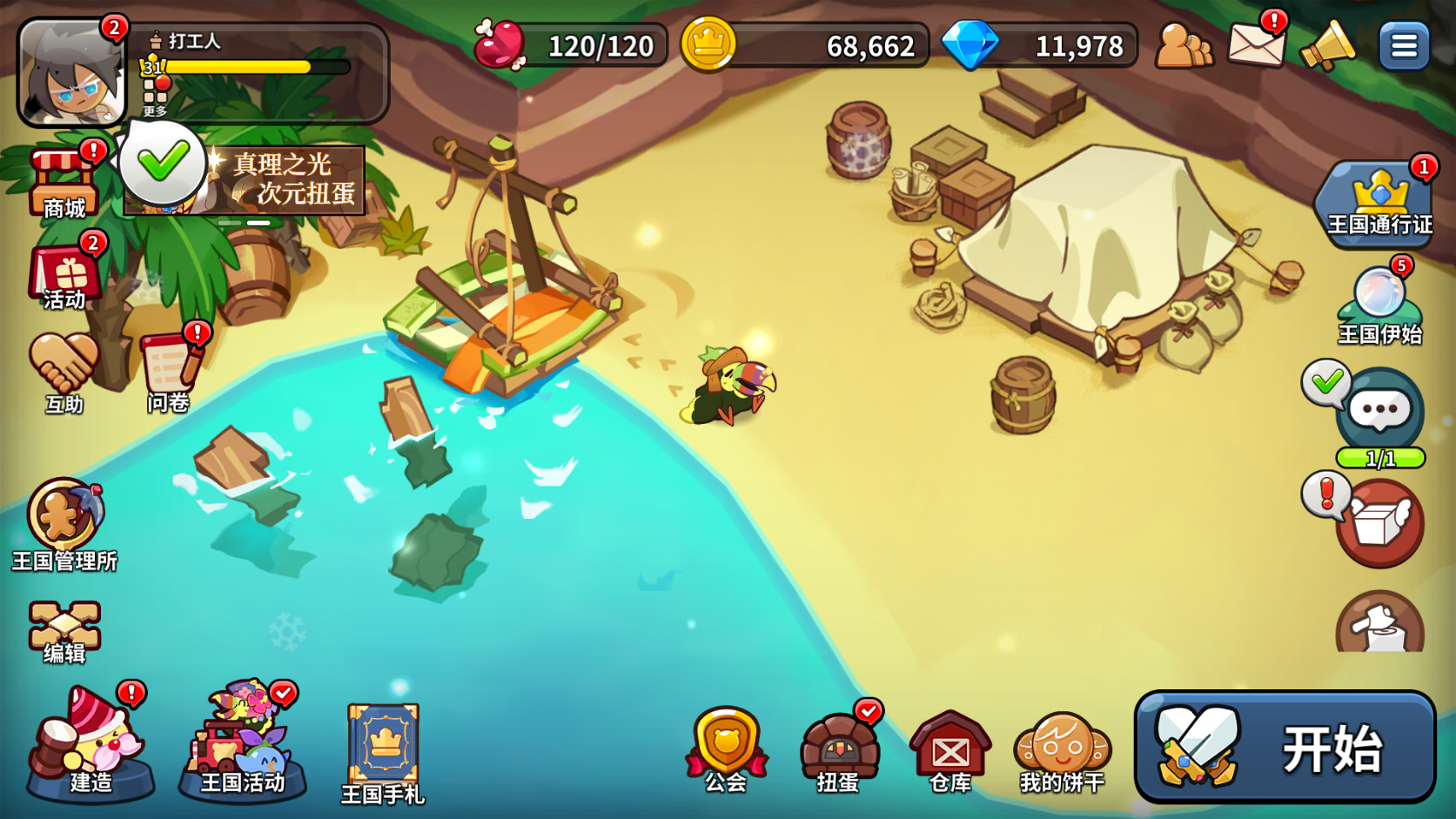 游戏第四天,我们可以解锁众多左侧沙滩上的设施: