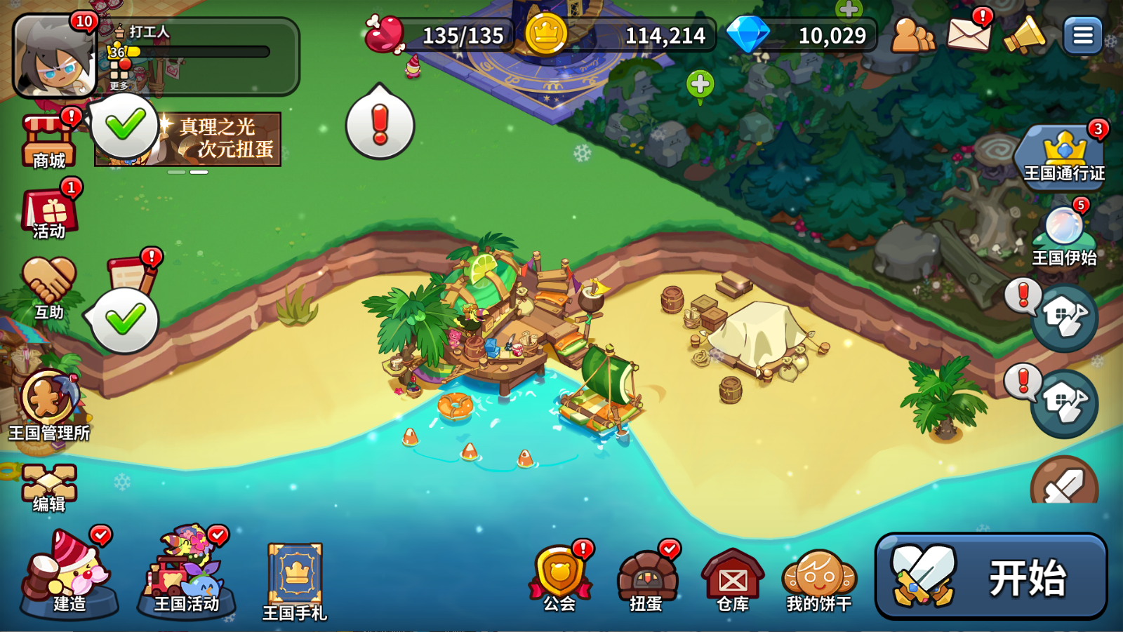 第四天的核心内容就如上所示,基本上解锁各种设施项目后,剩下的时间大家就可以一边建造王国,一边等待道具的生产了。