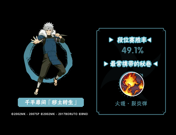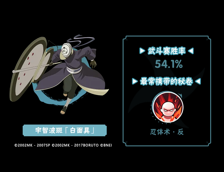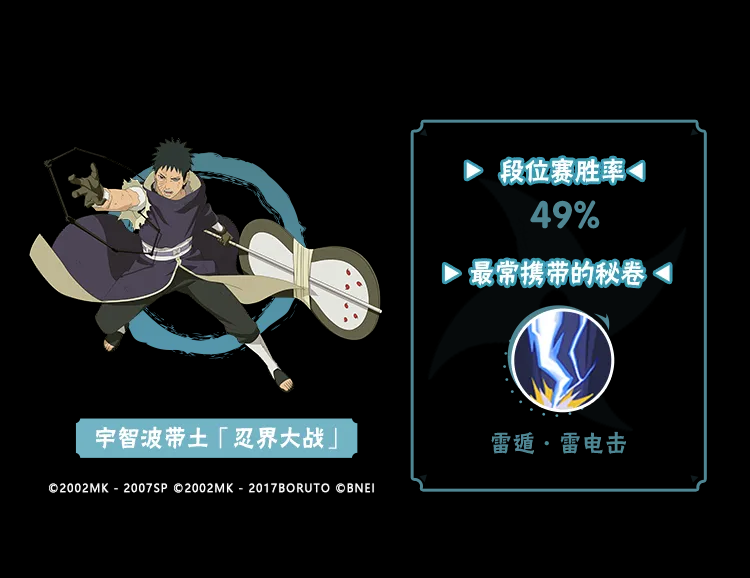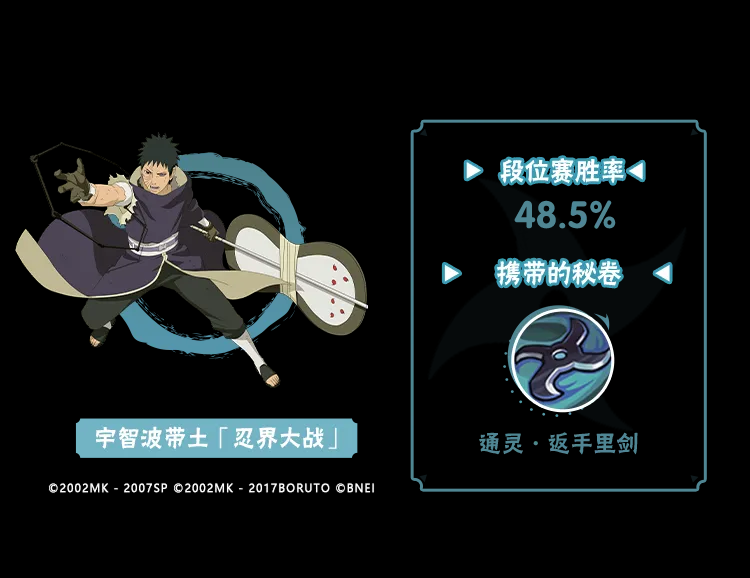 宇智波带土「忍界大战」带通灵·返手里剑能够增强自身的起手能力,来看看这两者搭配上场时胜率如何吧!