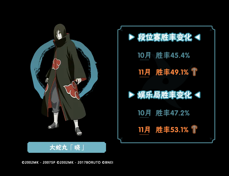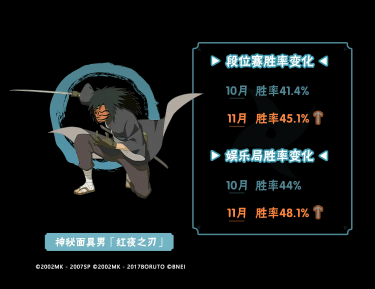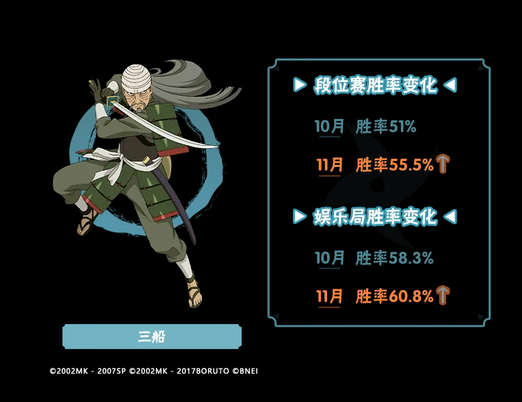 11月大版本更新后,经过平衡性调整的忍者们在决斗场越战越勇,让我们来看看他们的数据具体情况吧~