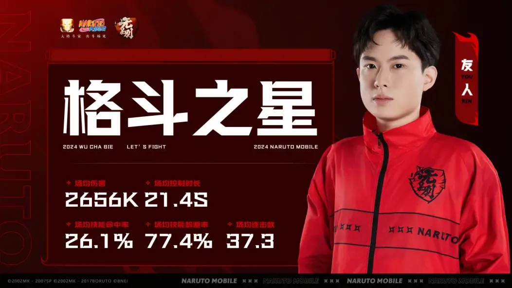 本次年总无差别瑞士轮比赛中,友人一路披荆斩棘,在第二轮与荒芜的对战中,凭借对时机的精准把控获得胜利!第三轮对阵无惜时,友人多次拿到先手并将对方打致残血,强势追击下将其一举击败,成功晋级八强并荣获“格斗之星”的称号!让我们一起期待友人选手在接下来的总决赛阶段能有更加精彩的表现吧!