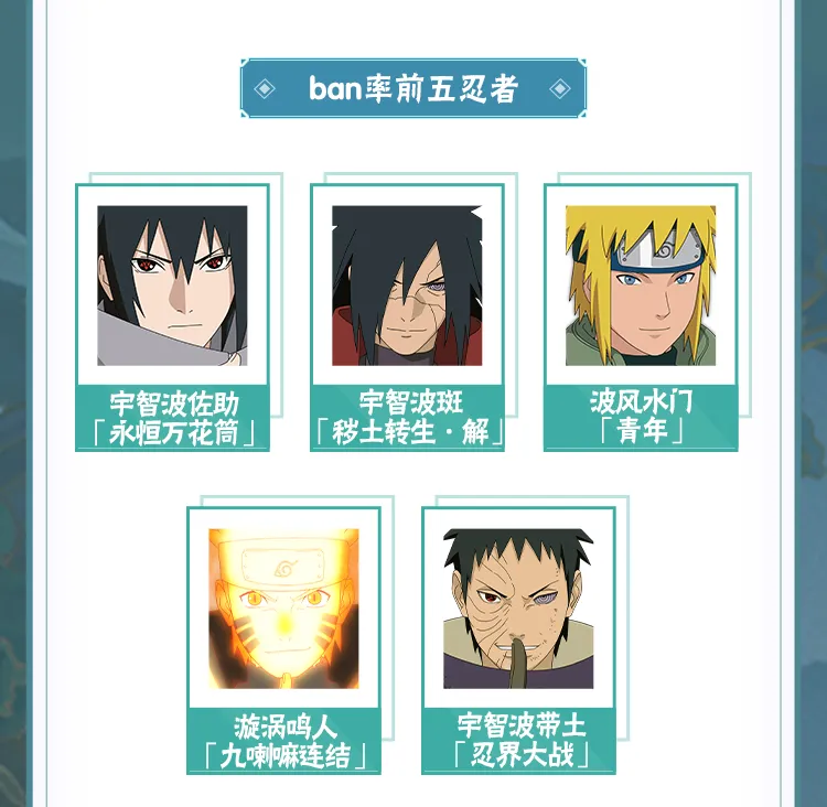 究极武斗赛的登场率前五出炉,来看看哪些忍者及其携带的秘卷在究极武斗赛中最受欢迎吧!