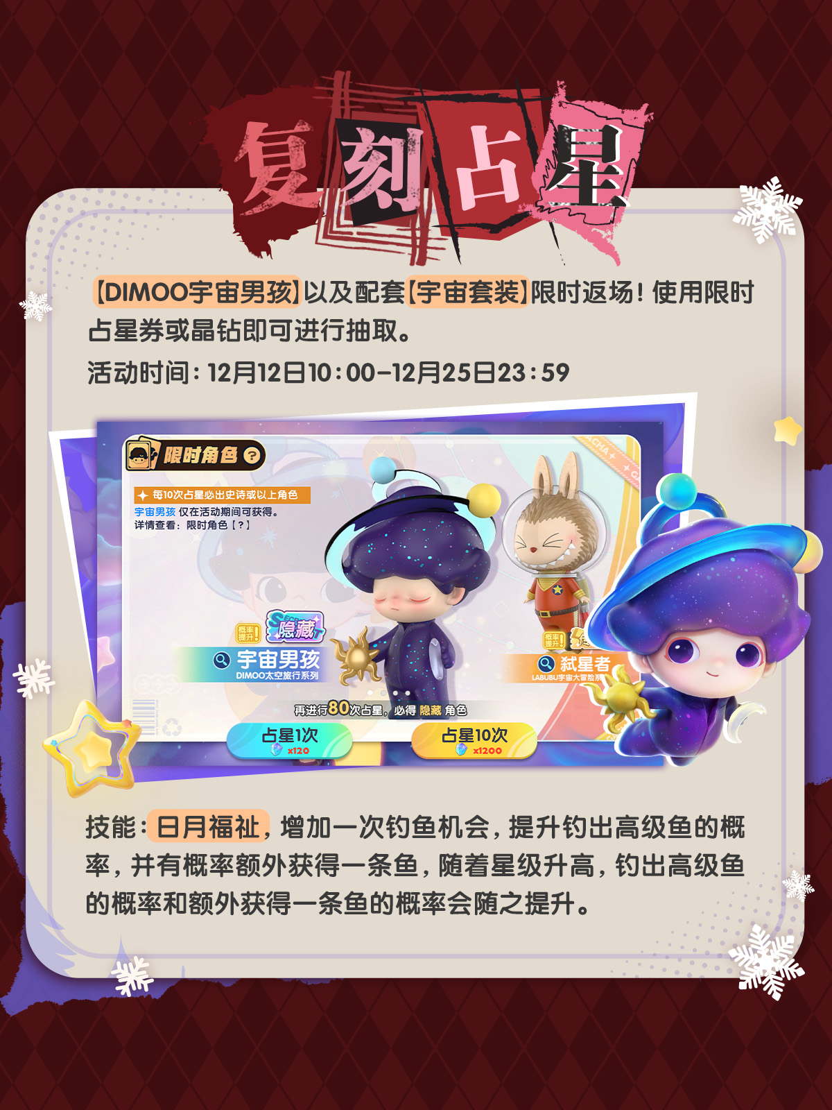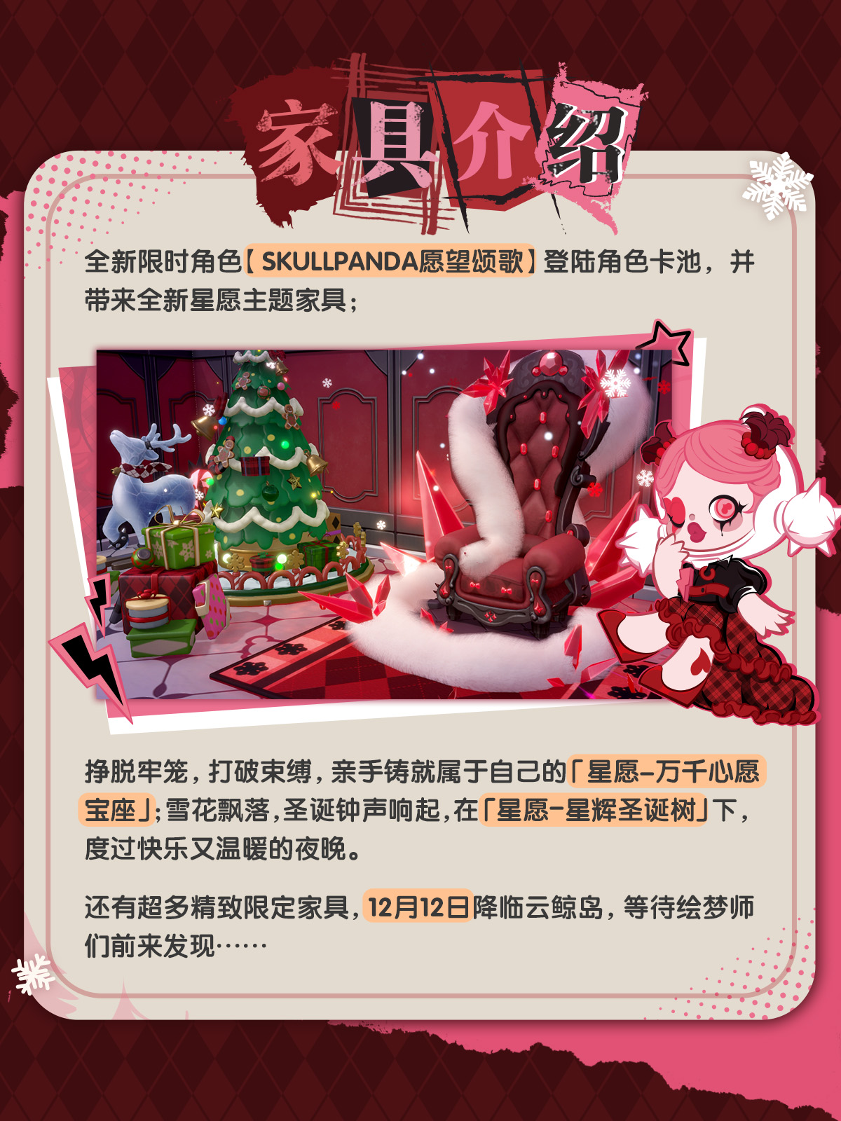 ✨全新隐藏角色【SKULLPANDA愿望颂歌】、全新传奇角色【LABUBU水果夹心糖】登陆角色卡池,并带来全新星愿主题家具!
